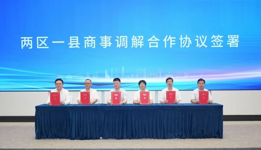 两区一县司法局、法院共同签署《长三角一体化示范区提升商事调解服务质效助力优化营商环境合作协议》,将“交流共识”转化为“行动契约”,标志着示范区跨区域商事调解协作机制进一步落地见效,为示范区营商环境优化提供了制度保障。